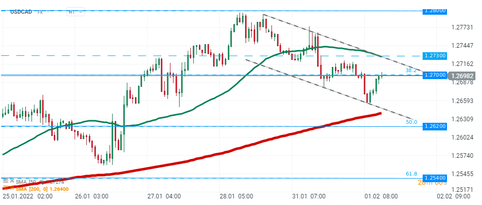 USDCAD ha avuto una reazione relativamente modesta ai rilasci di dati odierni. La coppia di valute continua ad aggirarsi intorno al livello di 1,2700. Fonte: xStation5