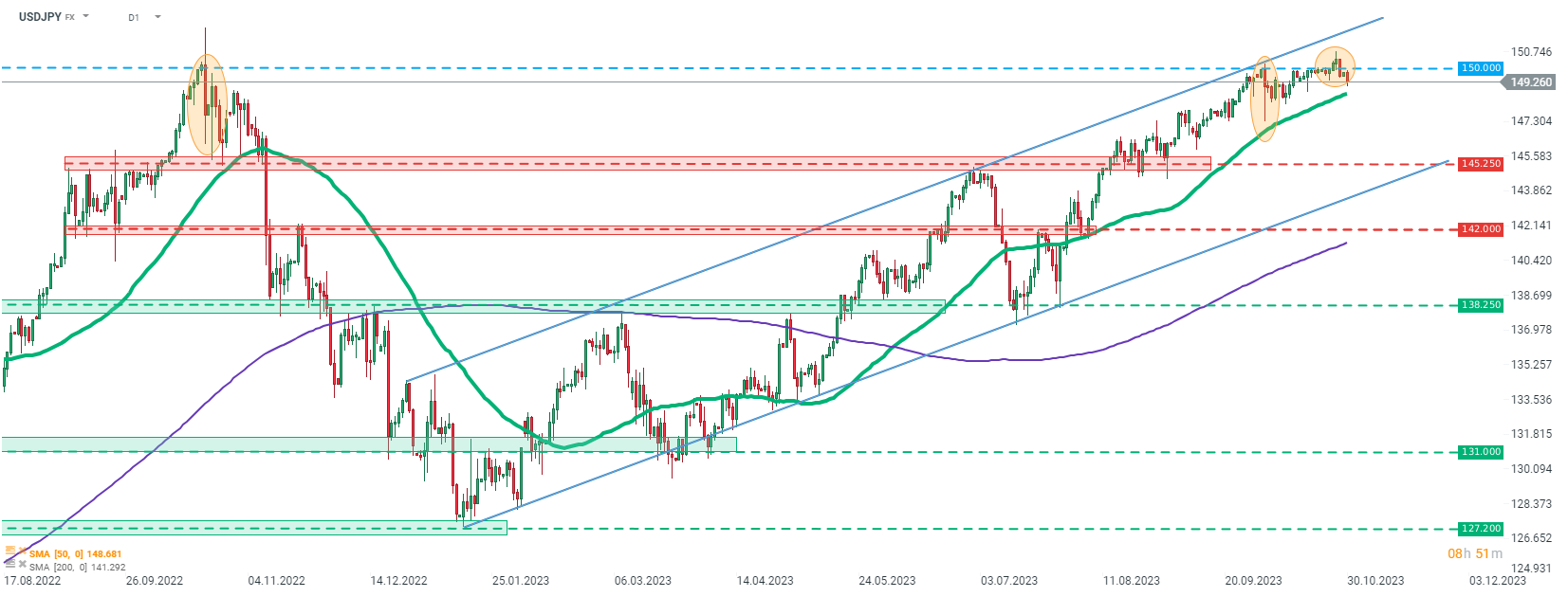 Lo yen giapponese è stato recentemente sotto pressione. L'USDJPY è scambiato vicino a 150,00 - un livello che è stato associato agli interventi della Banca del Giappone. I test di questo livello sono stati accolti con rapide inversioni di tendenza in passato, quindi potrebbe essere un buon punto per un pullback. Una sorpresa da parte della Banca del Giappone, ad esempio un allentamento della banda di oscillazione dei rendimenti, dovrebbe essere positiva per lo JPY, soprattutto se accompagnata da un orientamento favorevole ai tassi. In questo scenario, l'USDJPY potrebbe subire un forte pullback dai livelli attuali verso il limite inferiore del canale. D'altro canto, l'assenza di un messaggio di orientamento favorevole potrebbe innescare la debolezza dello JPY, con la coppia che si spingerebbe al di sopra dell'area di 150,00.