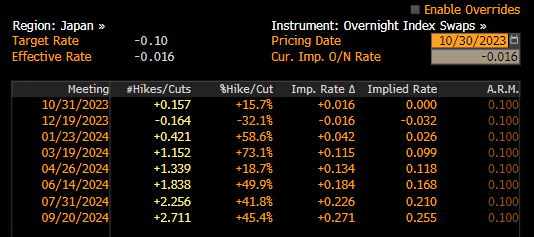 Nella riunione di domani, la Banca del Giappone dovrebbe mantenere invariato il tasso di interesse principale a -0,10%. Questa è l'opinione degli economisti intervistati da Bloomberg e Reuters, nonché dei prezzi sui mercati monetari. Gli swap quotano solo il 15% di possibilità di un rialzo dei tassi di 10 punti base. Il primo rialzo completo è attualmente previsto per marzo 2024. È sempre più diffusa la sensazione che la Banca del Giappone possa decidere di fare un passo più veloce. Tuttavia, sebbene sia improbabile un rialzo dei tassi nella prossima riunione, la Banca del Giappone potrebbe annunciare altre azioni.