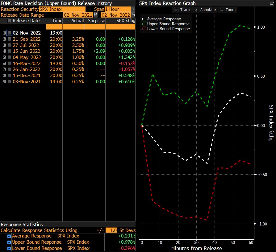 Osservando il modo in cui l'indice S&P500 ha reagito 1 ora dopo la decisione, notiamo che l'indice sembra confermare che i commenti di Powell sono i più significativi per il mercato.