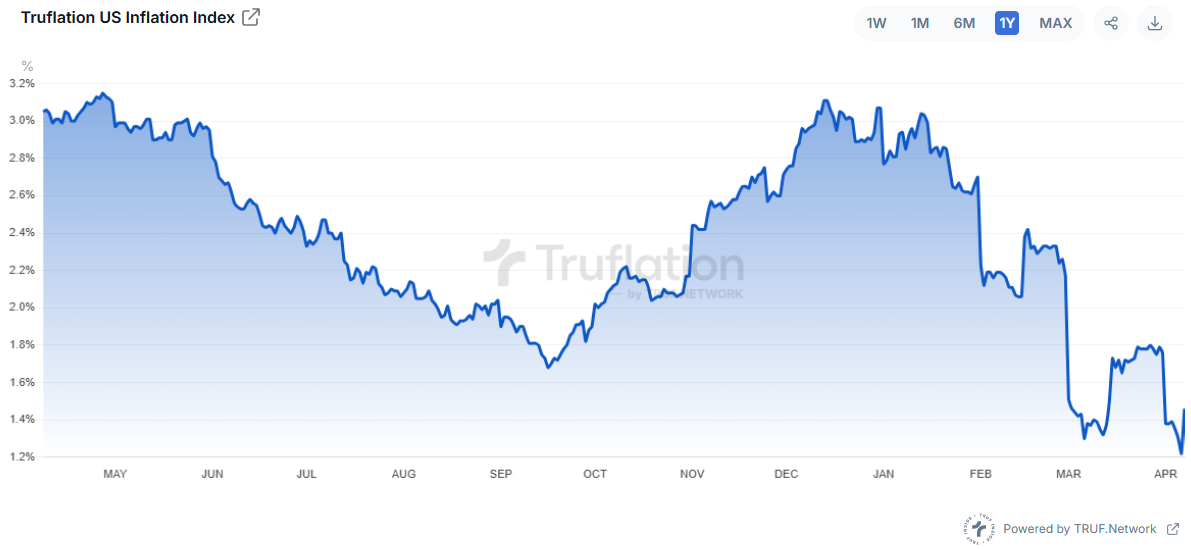 Come suggerito da Truflation, societá che si occupa di misurare l'inflazione in tempo reale negli Usa grazie al suo dataset nettamente maggiore rispetto a quello del Bls, l'inflazione ha subito un fortissimo calo da fine 2024 con ribassi fortissimi. In sostanza la direzionalitá dell'inflazione per il prossimo dato é molto probabilmente ribassista e le stime attuali vedono infatti un'inflazione passare dal 2,9% al 2,6%, un ribasso non molto consistente ma che di fatto potrebbe esasperarsi ulteriormente anche nel prossimo mese visti i dati attuali di Truflation. Al momento, sempre secondo Truflation, non vediamo alcun impatto dei dazi sull'inflazione che potrebbe di fatto salire a causa di questo shock esogeno presentando un enorme problema all'economia, ponendo un interrogativo importante: i consumatori accetteranno prezzi piú alti oppure vedremo direttamente un ribasso dell'inflazione per via di un calo immediato dei consumi? Sicuramente potremmo dire che i dazi potrebbero fare la amplificatore dell'impatto dei consumi sull'inflazione.