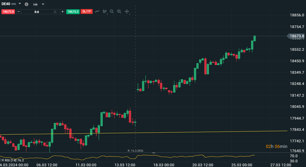 Grafico DAX a timeframe 4 ore - Fonte: XStation