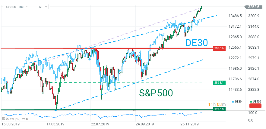 Il DE30 è stato in una tendenza al rialzo fino a metà novembre, ma da allora non ha seguito Wall Street nella frenesia degli acquisti. Fonte: xStation5