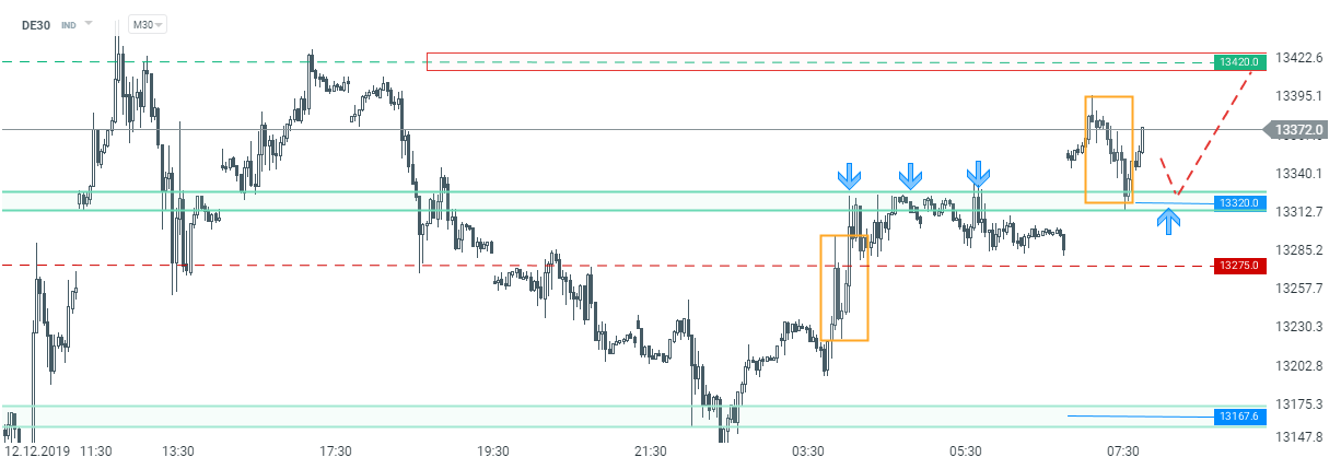 I recenti breakout da 13300 sono stati di breve durata e hanno causato correzioni. Tuttavia, l'ultimo ha mostrato almeno un doppio massimo. Fonte: xStation5