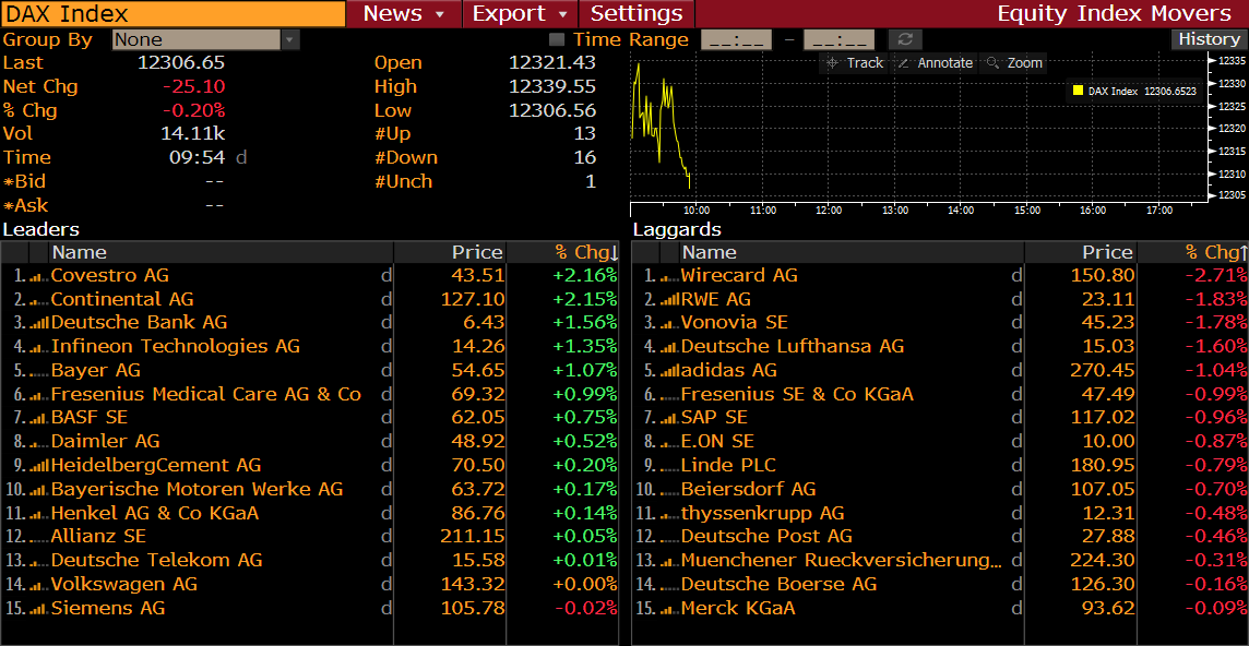 Membri DAX alle 8:54 am BST. Fonte: Bloomberg