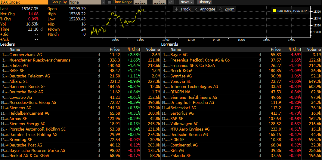 Gli indici europei sono quasi invariati martedì, dopo i guadagni registrati lunedì. Il DAX tedesco e il FTSE MIB italiano sono quasi invariati, il CAC40 francese e il FTSE 100 del Regno Unito sono in leggero calo, mentre l'IBEX spagnolo e il WIG20 polacco sono leggermente in rialzo. Le azioni sono sotto pressione oggi, a seguito di letture dell'IPC francese e spagnolo superiori alle attese. Tuttavia, la maggior parte di queste perdite sono già state invertite.