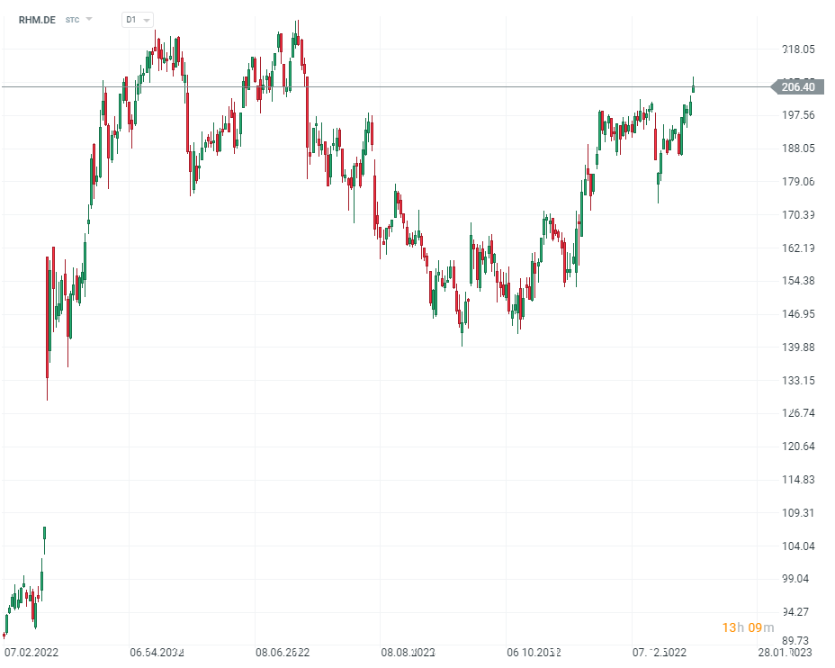 Rheinmetall, una società di difesa, ha beneficiato notevolmente del conflitto russia-ucraina lo scorso anno. Le notizie di supporto hanno aiutato il prezzo delle azioni a raggiungere il livello più alto da luglio.