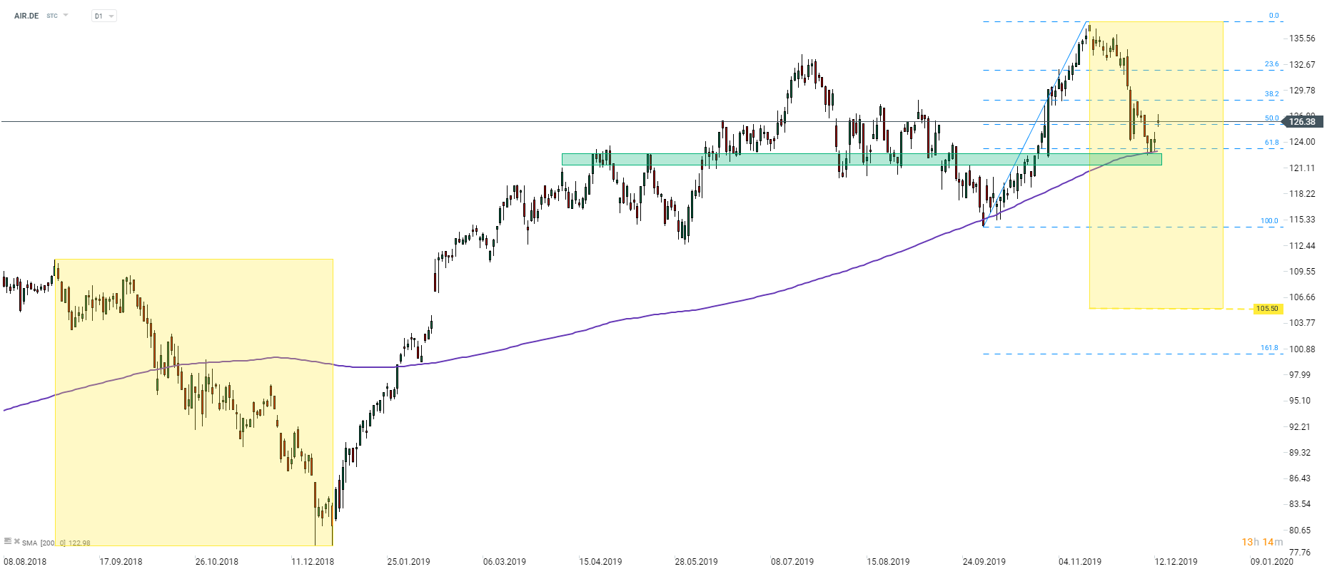 I mercati azionari Europei sono in rialzo oggi spinti principalmente da due storie. Innanzitutto, i conservatori sono riusciti a ottenere una maggioranza significativa nelle elezioni del Regno Unito. Un simile sviluppo è stato accolto favorevolmente dai mercati in quanto significa che il rischio di una Brexit senza accordi è molto più ridotto ora. La seconda storia che sta spingendo i mercati oggi è la decisione di Trump di ritardare le tariffe che avrebbero dovuto essere messe in atto domenica 15 dicembre. Inoltre, si dice che gli Stati Uniti stiano anche considerando la possibilità di tagliare della metà le tariffe esistenti in cambio di grandi acquisti agricoli. I trader possono aspettarsi che l'umore ottimista prevalga nel corso della giornata.