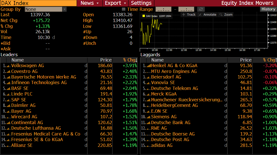 Membri DAX alle 9:30 am GMT. Fonte: xStation5