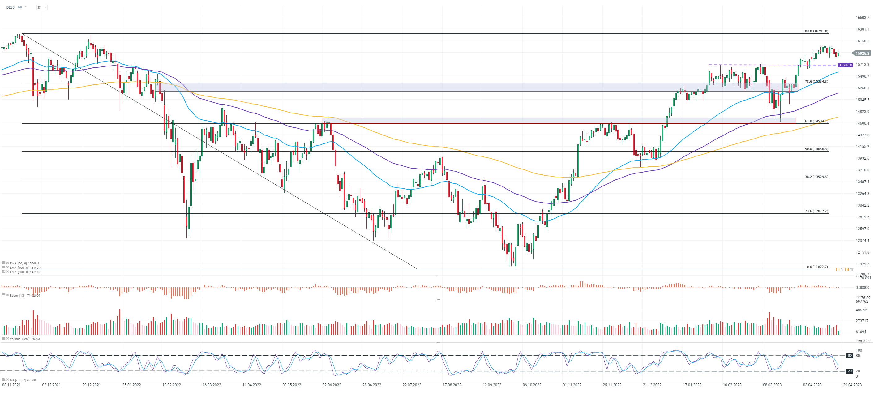 La seduta di giovedì sui mercati europei porta un miglioramento del sentiment tra i principali benchmark del continente. Il DAX sta attualmente lottando per superare i livelli di apertura di ieri, in gran parte guidato dalla pubblicazione di risultati trimestrali relativamente buoni da parte di società in Europa e negli Stati Uniti. L'attenzione degli investitori oggi è focalizzata sul pacchetto di dati degli Stati Uniti, dove, tra l'altro, verranno pubblicati i dati del PIL e il rapporto sull'inflazione PCE.