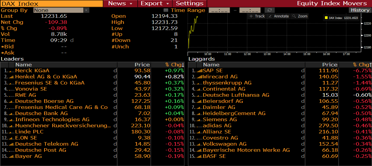Membri DAX alle 8:29 am BST. Fonte: Bloomberg