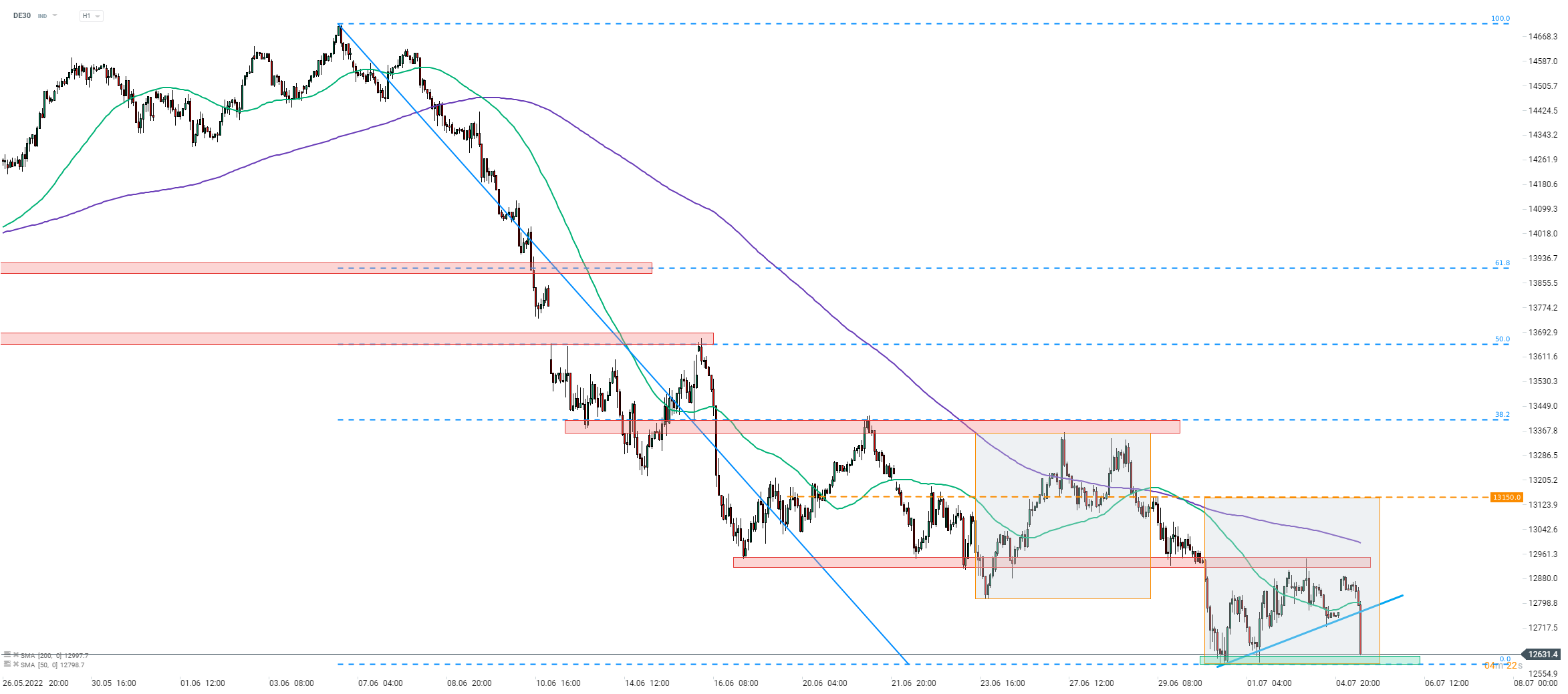 - DE30 si avvicina ai minimi recenti nell'area di 12.600 punti