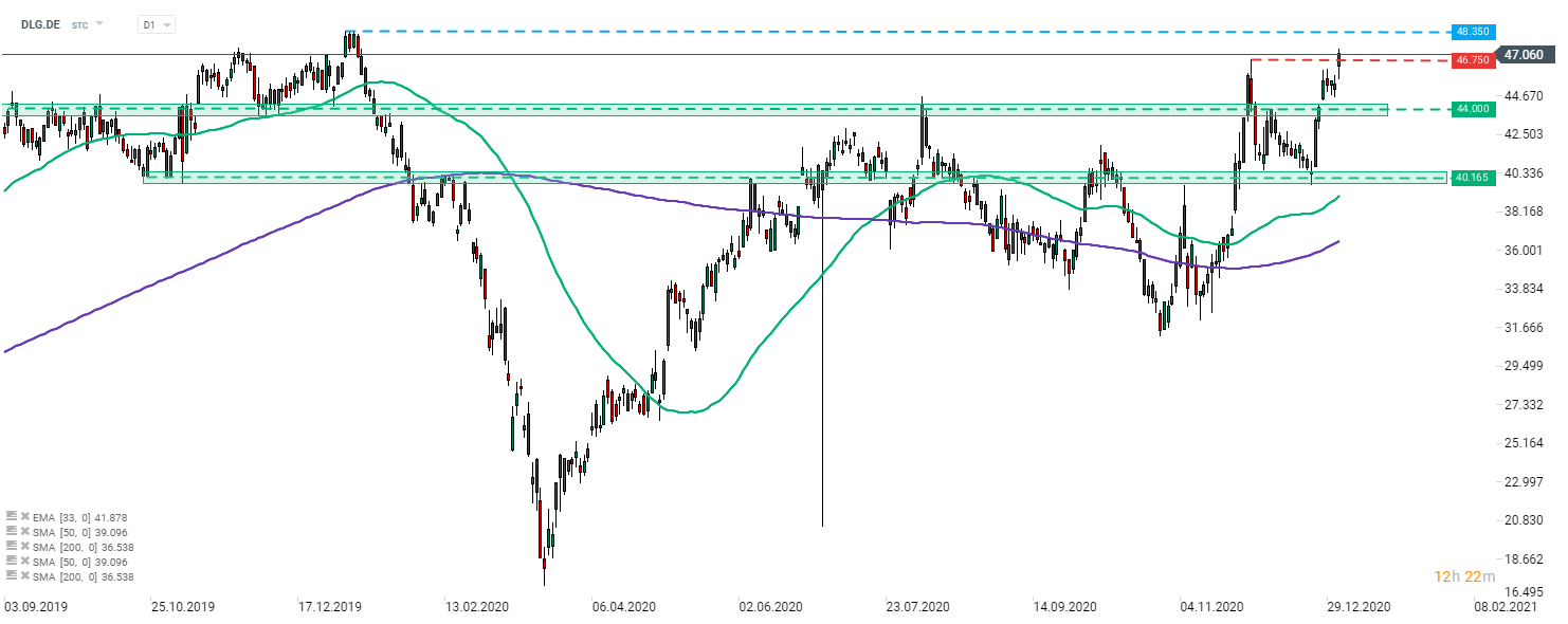 Il prezzo delle azioni di Dialog Semiconductor (DLG.DE) ha ricevuto una spinta in seguito al rilascio di una previsione dei ricavi aggiornata. Il titolo ha superato un picco locale a 46,75 € e si sta avvicinando al massimo da gennaio 2020 a 48,35 €. Fonte: xStation5