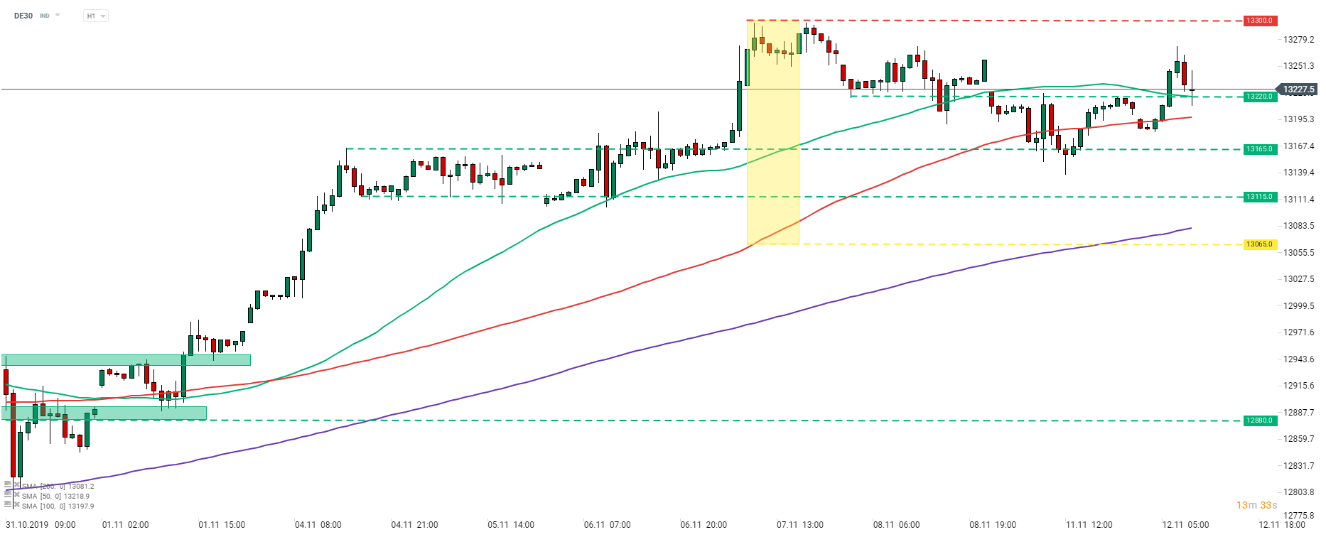 DE30 è calato ieri e ha testato i 13165 punti. Gli acquirenti sono riusciti a fermare il declino e spingere l'indice verso l'alto. All'inizio della sessione, l'indice ha tentato di superare il livello di oscillazione a breve termine a 13220 punti. Un punto da notare è che la media mobile di 50 ore (linea verde) può essere trovata nella stessa area, quindi il significato di questo supporto può essere maggiore. Se DE30 dovesse oltrepassarlo, potremmo vedere un'accelerazione in una mossa al ribasso e un potenziale nuovo test dei 13165 punti. Il supporto chiave rimane al limite inferiore della struttura di Overbalance (13065 punti). Tuttavia, si dovrebbe tenere presente che le case automobilistiche costituiscono una parte significativa dell'indice, pertanto la decisione sulle tariffe automobilistiche europee potrebbe essere un punto di svolta per l'indice tedesco.