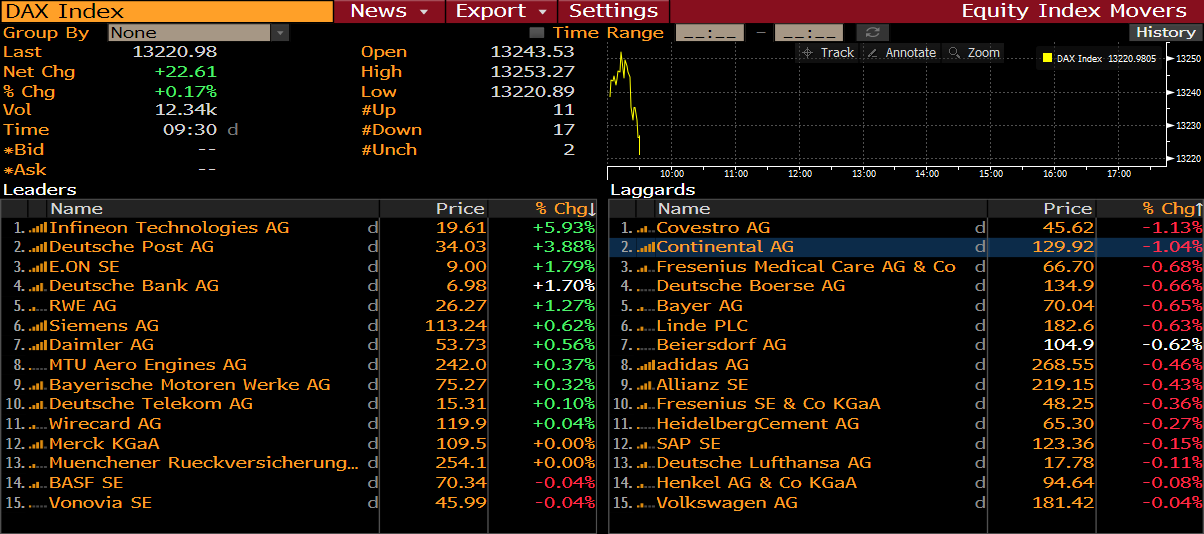 Le case automobilistiche sono in rialzo oggi, grazie ai rapporti di Politico. Politico afferma che domani il presidente degli Stati Uniti, Donald Trump, annuncerà la decisione sulle tariffe automobilistiche europee e si prevede che opterà per un altro ritardo di 6 mesi. Case automobilistiche come Daimler (DAI.DE), Volkswagen (VOW3.DE) e BMW (BMW.DE) sembrano apprezzare queste notizie.