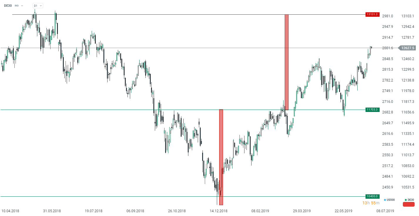 Nel corso delle ultime settimane l'economia globale e i mercati azionari globali si sono mossi in direzioni opposte, la prima ha continuato a deteriorarsi (alcune banche centrali hanno già tagliato i tassi mentre altre si stanno preparando per un cambiamento nella politica monetaria) mentre quest'ultimo ha continuato a scalare ulteriormente grazie a una tregua commerciale raggiunta tra Stati Uniti e Cina durante lo scorso vertice del G20 a Osaka, in Giappone. Sull'onda di questi eccellenti stati d'animo in tutto il mondo, Wall Street ha raggiunto nuovi record mercoledì prima delle vacanze di oggi (il Giorno dell'Indipendenza). Inoltre, durante gli orari di negoziazione asiatici abbiamo ricevuto alcune rivelazioni ottimistiche che suggeriscono che i leader di Stati Uniti e Cina avranno una telefonata entro la prossima settimana. Inoltre, secondo quanto riferito, la Cina ha iniziato a prendere in considerazione l'aumento degli acquisti di alcuni prodotti agricoli dagli Stati Uniti, tra cui mais, soia o maiale. Tali rapporti puntano a mantenere un sentimento ottimistico nei mercati, tuttavia, bisogna essere consapevoli che un confronto con la realtà potrebbe arrivare a breve quando gli investitori si renderanno conto che una politica più espansiva delle principali banche centrali (a prima vista positiva per le azioni) è un risposta alla crisi economica in arrivo. Pertanto, riteniamo che l'effetto netto per le azioni potrebbe essere negativo, nonostante un approccio "fin qui tutto bene" condiviso tra gli investitori.