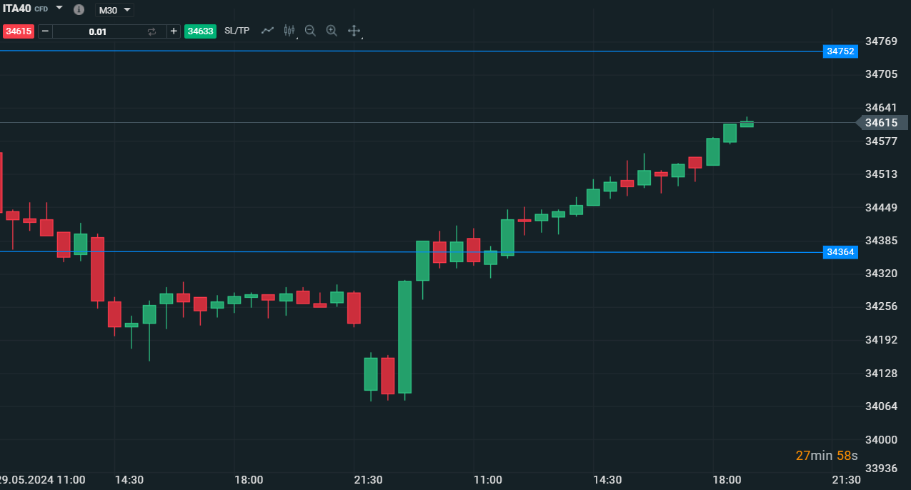 Dinamica di Ftse Mib rialzista su base 30 minuti - Fonte:XStation