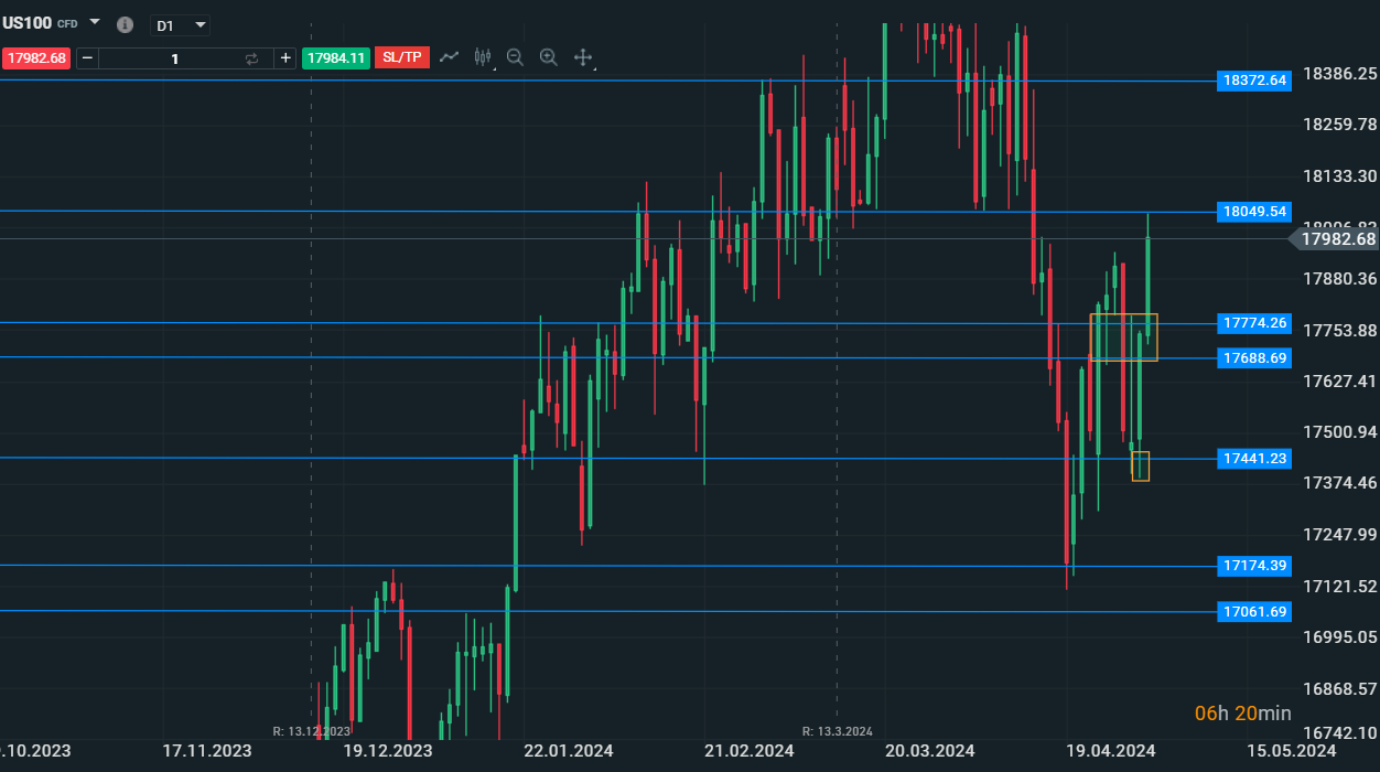 Dinamica daily di Nasdaq che testa i livelli settimanali - Fonte:XStation