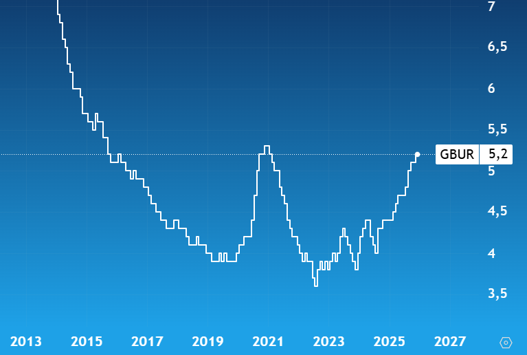 Aumenta la Disoccupazione Uk al 5,2% - Fonte: TradingView