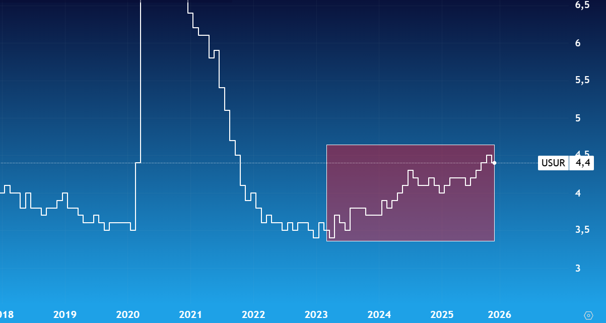 Disoccupazione Usa al 4,4%, un calo che allontana il taglio dei tassi e che di fatto non suggerisce un miglioramento del mercato del lavoro Usa. Infatti, durante la scorsa settimana, abbiamo visto anche il record dei tagli di posti di lavoro del report Challenger, per il 2025 abbiamo superato 1,2 milioni di unitá, il dato piú alto dal post-pandemia e dato nettamente superiore a quello degli anni precedenti, quando tra il 2021 e il 2022 abbiamo visto circa 360k tagli annuali, mentre per il 2023 e il 2024 i tagli erano "solo" intorno ai 750k. Questo dato suggerisce quanto detto negli scorsi mesi, ossia il mercato del lavoro non é in salute ma questo non viene confermato ancora dal tasso di disoccupazione. Male anche i dati nonfarm payrolls che risultano particolarmente deboli, siamo ben al di sotto dell 100k unitá e le revisioni confermano la tendenza negativa con nessun revisione in positivo per il 2025 sui dati definitivi. Un vero e proprio rebus quello del mercato del lavoro che sembra non riuscire a sbloccare una tendenza negativa che viene evidenziata dalla maggior parte dei dati tranne che per il tasso di disoccupazione, oggetto negli ultimi mesi di varie polemiche relative alle modalitá di rilevazione dei dati.