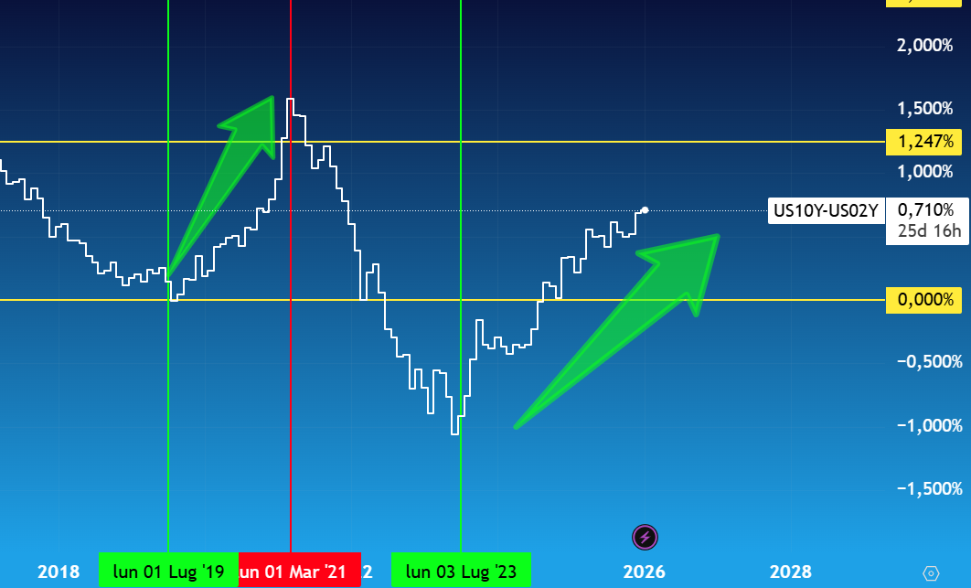 Spread 2-10 anni Usa ad un nuovo record dei 71 punti base - Fonte: XStation - Studio: David Pascucci