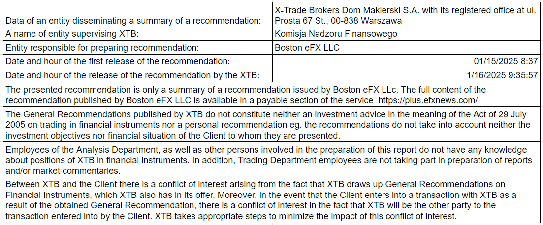 Questo materiale è una comunicazione di marketing ai sensi dell'Art. 24, paragrafo 3, della direttiva 2014/65 / UE del Parlamento europeo e del Consiglio, del 15 maggio 2014, relativa ai mercati degli strumenti finanziari e che modifica la direttiva 2002/92 / CE e la direttiva 2011/61 / UE (MiFID II). La comunicazione di marketing non è una raccomandazione di investimento o informazioni che raccomandano o suggeriscono una strategia di investimento ai sensi del regolamento (UE) n. 596/2014 del Parlamento europeo e del Consiglio, del 16 aprile 2014, relativo agli abusi di mercato (regolamento sugli abusi di mercato) e che abroga la direttiva 2003/6 / CE del Parlamento europeo e del Consiglio e direttive della Commissione 2003/124 / CE, 2003/125 / CE e 2004/72 / CE e regolamento delegato (UE) 2016/958 della Commissione, del 9 marzo 2016, che integra il regolamento UE) n. 596/2014 del Parlamento europeo e del Consiglio per quanto riguarda le norme tecniche di regolamentazione per le disposizioni tecniche per la presentazione obiettiva di raccomandazioni di investimento o altre informazioni che raccomandano o suggeriscono una strategia di investimento e per la divulgazione di particolari interessi o indicazioni di conflitti di interessi o qualsiasi altra consulenza, anche nell'ambito della consulenza sugli investimenti, ai sensi della legge sugli strumenti finanziari del 29 luglio 2005 (ad es. Journal of Laws 2019, voce 875, come modificata). La comunicazione di marketing è preparata con la massima diligenza, obiettività, presenta i fatti noti all'autore alla data di preparazione ed è priva di elementi di valutazione. La comunicazione di marketing viene preparata senza considerare le esigenze del cliente, la sua situazione finanziaria individuale e non presenta alcuna strategia di investimento in alcun modo. La comunicazione di marketing non costituisce un'offerta di vendita, offerta, abbonamento, invito all'acquisto, pubblicità o promozione di strumenti finanziari. XTB S.A. non è responsabile per eventuali azioni o omissioni del cliente, in particolare per l'acquisizione o la cessione di strumenti finanziari. XTB non si assume alcuna responsabilità per qualsiasi perdita o danno, anche senza limitazione, eventuali perdite, che possono insorgere direttamente o indirettamente, intrapresa sulla base delle informazioni contenute in questa comunicazione di marketing. Nel caso in cui la comunicazione di marketing contenga informazioni su eventuali risultati relativi agli strumenti finanziari ivi indicati, questi non costituiscono alcuna garanzia o previsione relativa ai risultati futuri. Le prestazioni passate non sono necessariamente indicative dei risultati futuri, e chiunque agisca su queste informazioni lo fa interamente a proprio rischio.