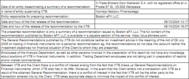 Questo materiale è una comunicazione di marketing ai sensi dell'Art. 24, paragrafo 3, della direttiva 2014/65 / UE del Parlamento europeo e del Consiglio, del 15 maggio 2014, relativa ai mercati degli strumenti finanziari e che modifica la direttiva 2002/92 / CE e la direttiva 2011/61 / UE (MiFID II). La comunicazione di marketing non è una raccomandazione di investimento o informazioni che raccomandano o suggeriscono una strategia di investimento ai sensi del regolamento (UE) n. 596/2014 del Parlamento europeo e del Consiglio, del 16 aprile 2014, relativo agli abusi di mercato (regolamento sugli abusi di mercato) e che abroga la direttiva 2003/6 / CE del Parlamento europeo e del Consiglio e direttive della Commissione 2003/124 / CE, 2003/125 / CE e 2004/72 / CE e regolamento delegato (UE) 2016/958 della Commissione, del 9 marzo 2016, che integra il regolamento UE) n. 596/2014 del Parlamento europeo e del Consiglio per quanto riguarda le norme tecniche di regolamentazione per le disposizioni tecniche per la presentazione obiettiva di raccomandazioni di investimento o altre informazioni che raccomandano o suggeriscono una strategia di investimento e per la divulgazione di particolari interessi o indicazioni di conflitti di interessi o qualsiasi altra consulenza, anche nell'ambito della consulenza sugli investimenti, ai sensi della legge sugli strumenti finanziari del 29 luglio 2005 (ad es. Journal of Laws 2019, voce 875, come modificata). La comunicazione di marketing è preparata con la massima diligenza, obiettività, presenta i fatti noti all'autore alla data di preparazione ed è priva di elementi di valutazione. La comunicazione di marketing viene preparata senza considerare le esigenze del cliente, la sua situazione finanziaria individuale e non presenta alcuna strategia di investimento in alcun modo. La comunicazione di marketing non costituisce un'offerta di vendita, offerta, abbonamento, invito all'acquisto, pubblicità o promozione di strumenti finanziari. XTB S.A. non è responsabile per eventuali azioni o omissioni del cliente, in particolare per l'acquisizione o la cessione di strumenti finanziari. XTB non si assume alcuna responsabilità per qualsiasi perdita o danno, anche senza limitazione, eventuali perdite, che possono insorgere direttamente o indirettamente, intrapresa sulla base delle informazioni contenute in questa comunicazione di marketing. Nel caso in cui la comunicazione di marketing contenga informazioni su eventuali risultati relativi agli strumenti finanziari ivi indicati, questi non costituiscono alcuna garanzia o previsione relativa ai risultati futuri. Le prestazioni passate non sono necessariamente indicative dei risultati futuri, e chiunque agisca su queste informazioni lo fa interamente a proprio rischio.