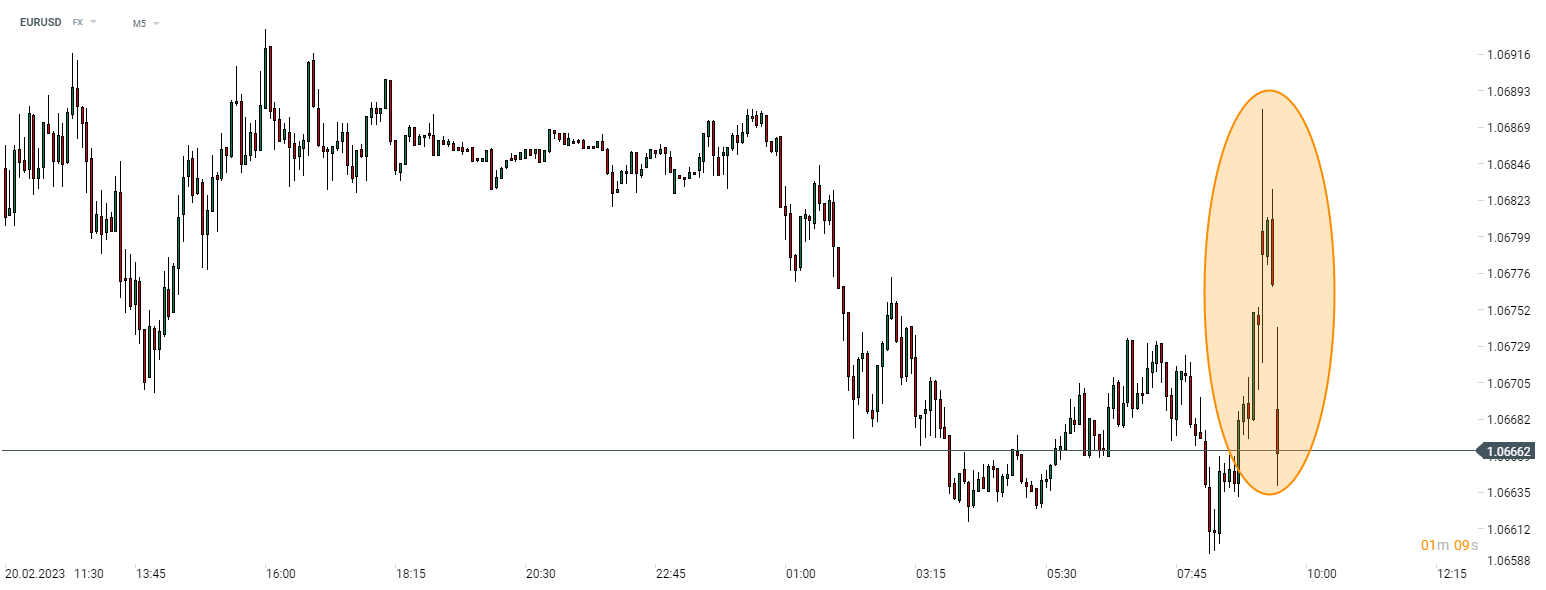 EURUSD Grafico di 5 minuti. Fonte: xStation5