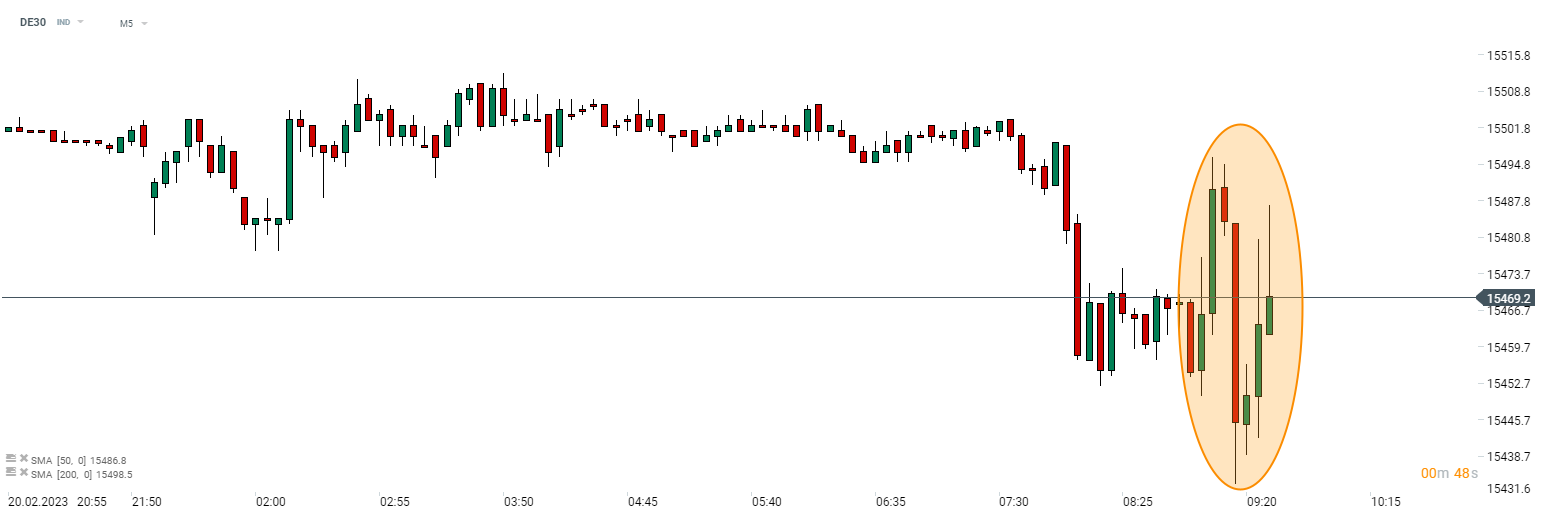 DE30 Grafico di 5 minuti. Fonte: xStation5