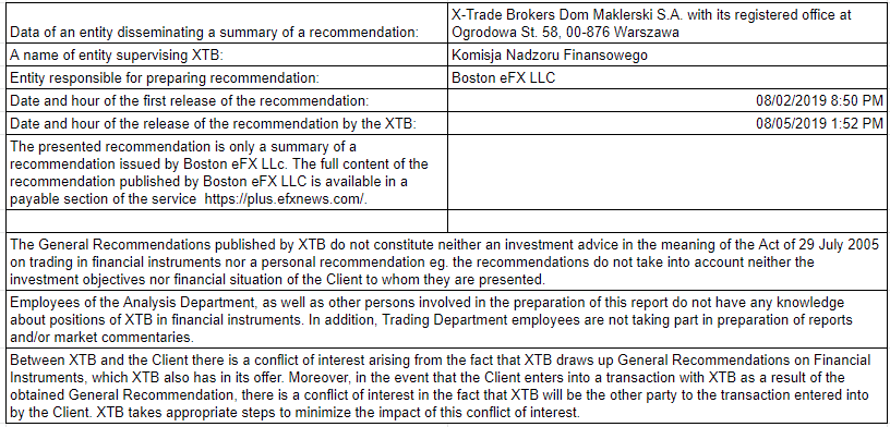 Questo materiale è una comunicazione di marketing ai sensi dell'Art. 24, paragrafo 3, della direttiva 2014/65 / UE del Parlamento europeo e del Consiglio, del 15 maggio 2014, relativa ai mercati degli strumenti finanziari e che modifica la direttiva 2002/92 / CE e la direttiva 2011/61 / UE (MiFID II). La comunicazione di marketing non è una raccomandazione di investimento o informazioni che raccomandano o suggeriscono una strategia di investimento ai sensi del regolamento (UE) n. 596/2014 del Parlamento europeo e del Consiglio, del 16 aprile 2014, relativo agli abusi di mercato (regolamento sugli abusi di mercato) e che abroga la direttiva 2003/6 / CE del Parlamento europeo e del Consiglio e direttive della Commissione 2003/124 / CE, 2003/125 / CE e 2004/72 / CE e regolamento delegato (UE) 2016/958 della Commissione, del 9 marzo 2016, che integra il regolamento UE) n. 596/2014 del Parlamento europeo e del Consiglio per quanto riguarda le norme tecniche di regolamentazione per le disposizioni tecniche per la presentazione obiettiva di raccomandazioni di investimento o altre informazioni che raccomandano o suggeriscono una strategia di investimento e per la divulgazione di particolari interessi o indicazioni di conflitti di interessi o qualsiasi altra consulenza, anche nell'ambito della consulenza sugli investimenti, ai sensi della legge sugli strumenti finanziari del 29 luglio 2005 (ad es. Journal of Laws 2019, voce 875, come modificata). La comunicazione di marketing è preparata con la massima diligenza, obiettività, presenta i fatti noti all'autore alla data di preparazione ed è priva di elementi di valutazione. La comunicazione di marketing viene preparata senza considerare le esigenze del cliente, la sua situazione finanziaria individuale e non presenta alcuna strategia di investimento in alcun modo. La comunicazione di marketing non costituisce un'offerta di vendita, offerta, abbonamento, invito all'acquisto, pubblicità o promozione di strumenti finanziari. XTB S.A. non è responsabile per eventuali azioni o omissioni del cliente, in particolare per l'acquisizione o la cessione di strumenti finanziari. XTB non si assume alcuna responsabilità per qualsiasi perdita o danno, anche senza limitazione, eventuali perdite, che possono insorgere direttamente o indirettamente, intrapresa sulla base delle informazioni contenute in questa comunicazione di marketing. Nel caso in cui la comunicazione di marketing contenga informazioni su eventuali risultati relativi agli strumenti finanziari ivi indicati, questi non costituiscono alcuna garanzia o previsione relativa ai risultati futuri. Le prestazioni passate non sono necessariamente indicative dei risultati futuri, e chiunque agisca su queste informazioni lo fa interamente a proprio rischio.