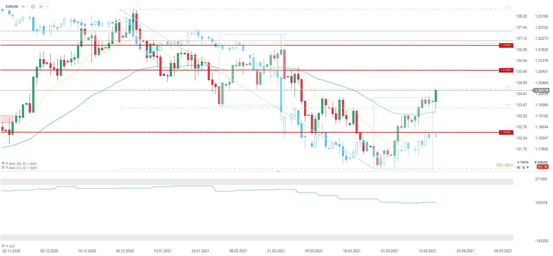 EURUSD ha registrato un forte movimento al rialzo all'inizio della sessione di trading europea di lunedì e ha superato il livello di 1,20 per la prima volta dall'inizio di marzo 2021. La recente ripresa sul mercato obbligazionario statunitense e il relativo calo dei rendimenti possono essere considerati fattori importanti per la debolezza del dollaro USA.