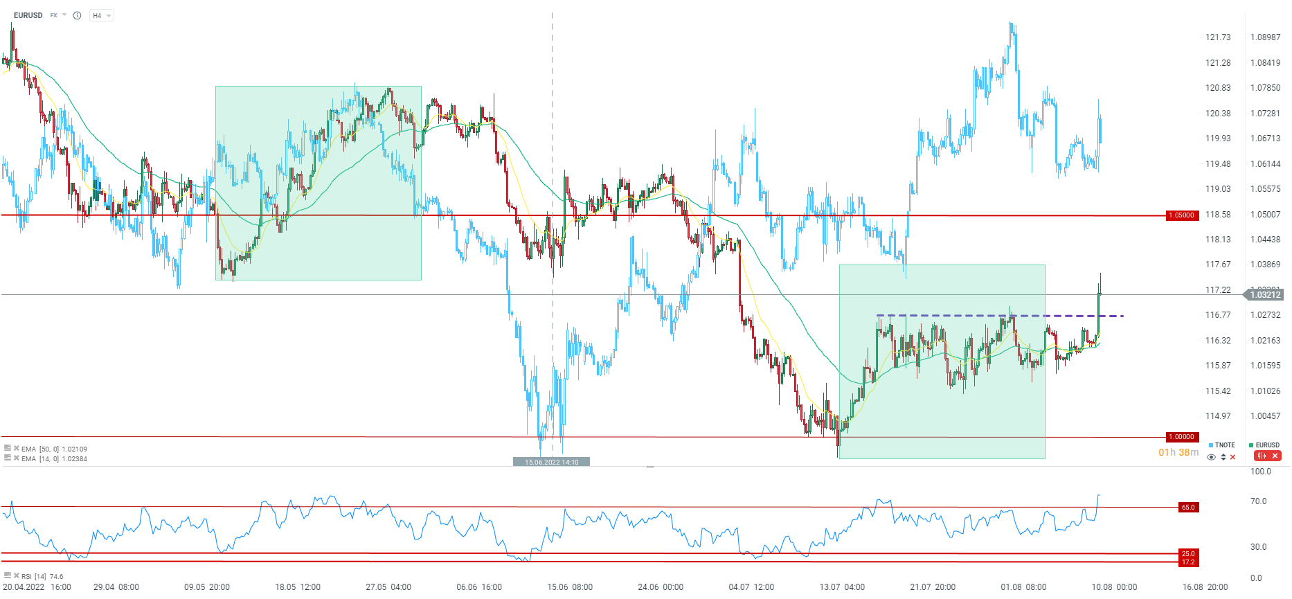 EURUSD ha superato la barriera principale di 1,0250 e ha raggiunto quasi 1,0400. Tuttavia, le parole di Evans hanno ridotto l'ottimismo degli investitori. Fonte: xStation5