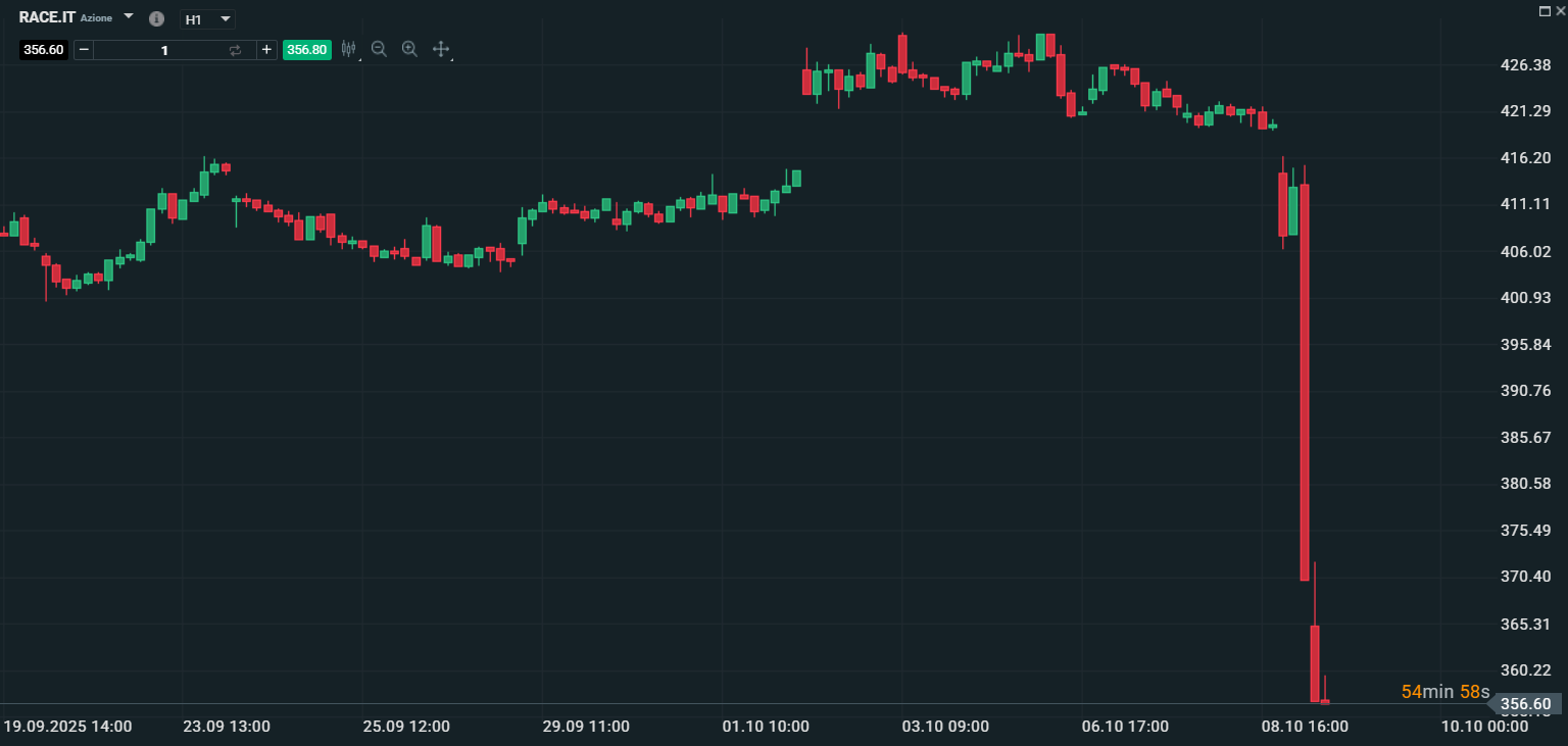 Alle 12:21 CET, Ferrari perdeva l’11,45%, scambiando a 370,7 euro.