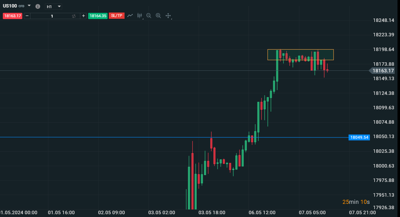 Nasdaq e l'area di resistenza intorno ai 18200 - Fonte:XStation