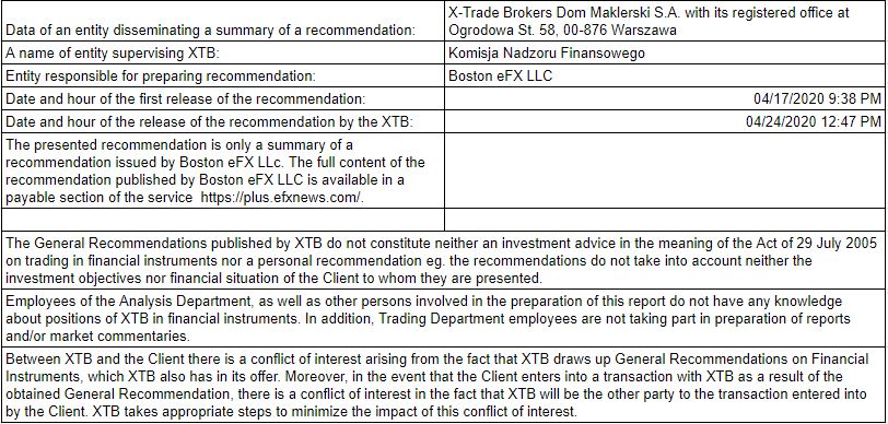 Questo materiale è una comunicazione di marketing ai sensi dell'Art. 24, paragrafo 3, della direttiva 2014/65 / UE del Parlamento europeo e del Consiglio, del 15 maggio 2014, relativa ai mercati degli strumenti finanziari e che modifica la direttiva 2002/92 / CE e la direttiva 2011/61 / UE (MiFID II). La comunicazione di marketing non è una raccomandazione di investimento o informazioni che raccomandano o suggeriscono una strategia di investimento ai sensi del regolamento (UE) n. 596/2014 del Parlamento europeo e del Consiglio, del 16 aprile 2014, relativo agli abusi di mercato (regolamento sugli abusi di mercato) e che abroga la direttiva 2003/6 / CE del Parlamento europeo e del Consiglio e direttive della Commissione 2003/124 / CE, 2003/125 / CE e 2004/72 / CE e regolamento delegato (UE) 2016/958 della Commissione, del 9 marzo 2016, che integra il regolamento UE) n. 596/2014 del Parlamento europeo e del Consiglio per quanto riguarda le norme tecniche di regolamentazione per le disposizioni tecniche per la presentazione obiettiva di raccomandazioni di investimento o altre informazioni che raccomandano o suggeriscono una strategia di investimento e per la divulgazione di particolari interessi o indicazioni di conflitti di interessi o qualsiasi altra consulenza, anche nell'ambito della consulenza sugli investimenti, ai sensi della legge sugli strumenti finanziari del 29 luglio 2005 (ad es. Journal of Laws 2019, voce 875, come modificata). La comunicazione di marketing è preparata con la massima diligenza, obiettività, presenta i fatti noti all'autore alla data di preparazione ed è priva di elementi di valutazione. La comunicazione di marketing viene preparata senza considerare le esigenze del cliente, la sua situazione finanziaria individuale e non presenta alcuna strategia di investimento in alcun modo. La comunicazione di marketing non costituisce un'offerta di vendita, offerta, abbonamento, invito all'acquisto, pubblicità o promozione di strumenti finanziari. XTB S.A. non è responsabile per eventuali azioni o omissioni del cliente, in particolare per l'acquisizione o la cessione di strumenti finanziari. XTB non si assume alcuna responsabilità per qualsiasi perdita o danno, anche senza limitazione, eventuali perdite, che possono insorgere direttamente o indirettamente, intrapresa sulla base delle informazioni contenute in questa comunicazione di marketing. Nel caso in cui la comunicazione di marketing contenga informazioni su eventuali risultati relativi agli strumenti finanziari ivi indicati, questi non costituiscono alcuna garanzia o previsione relativa ai risultati futuri. Le prestazioni passate non sono necessariamente indicative dei risultati futuri, e chiunque agisca su queste informazioni lo fa interamente a proprio rischio.