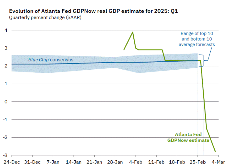 GDP NOW della Fed di Atlanta al -2,8%. Il prossimo aggiornamento il 6 marzo - Fonte: AtlantaFed