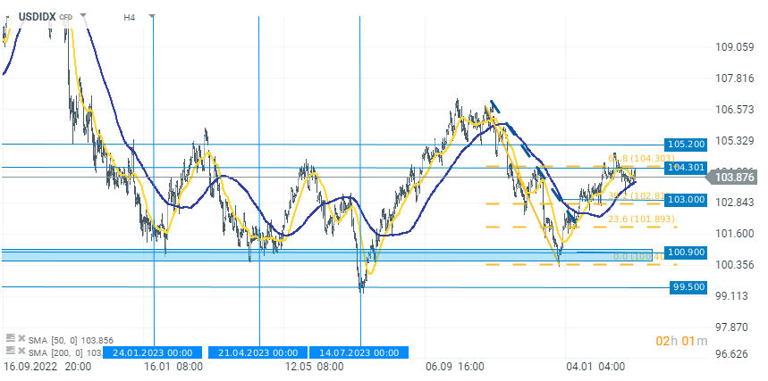 L'indice del dollaro USA ha interrotto il suo movimento al rialzo al livello Fibonacci 61,8% del ritracciamento del suo più recente movimento al ribasso. Oggi, l’USDIDX è in calo di quasi lo 0,20%. Il calo è accelerato dopo la pubblicazione dei dati ISM, che sono stati significativamente peggiori del previsto e hanno ravvivato le speculazioni su tagli più rapidi dei tassi di interesse.