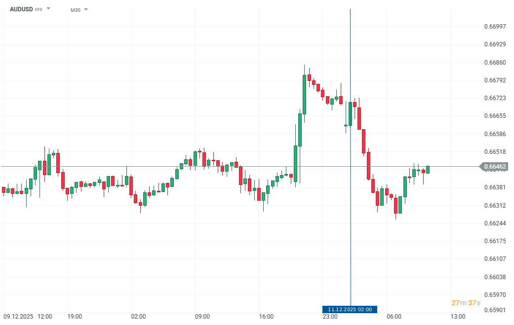 L’occupazione è diminuita inaspettatamente di 21,3 mila unità, il calo mensile più ampio degli ultimi nove mesi. La stabilizzazione del tasso di disoccupazione al 4,3% non ha rassicurato il mercato, poiché la composizione dei dati è apparsa fragile: l’occupazione full-time è crollata di 56,5 mila unità, la partecipazione è scesa al 66,7% e l’underemployment è salito al 6,2%, il livello più alto da oltre un anno. Il calo simultaneo del numero degli occupati e dei disoccupati indica che una parte della popolazione sta uscendo dalla forza lavoro, rafforzando la narrativa di un mercato del lavoro in raffreddamento, sebbene non in fase di contrazione. Questi elementi hanno mantenuto sotto pressione l’AUD, nonostante l’indebolimento del dollaro USA dopo il taglio dei tassi della Fed di 25 pb annunciato ieri.