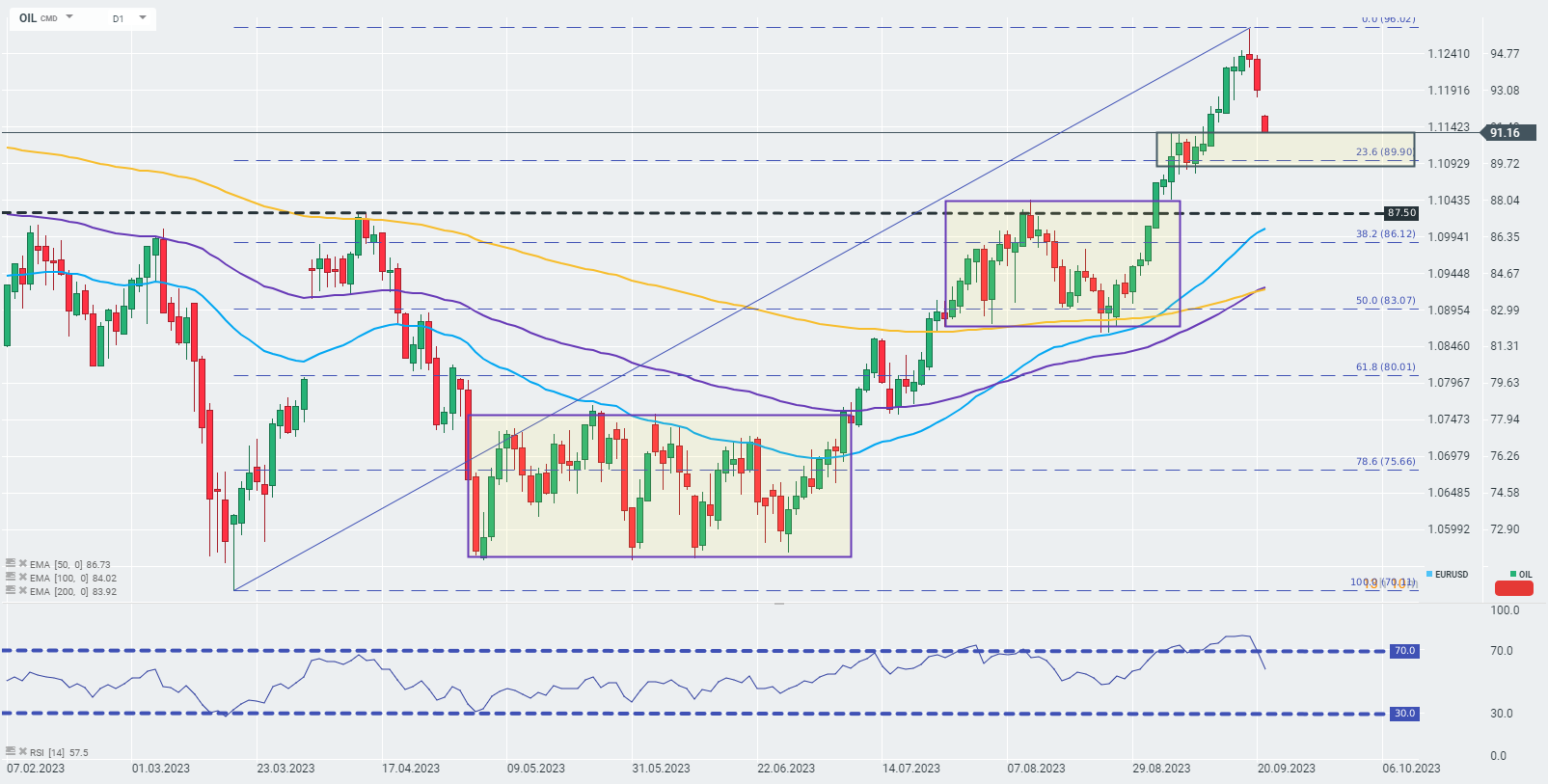 Il petrolio greggio sta scendendo intraday, poiché le aspettative di un rialzo dei tassi negli Stati Uniti hanno compensato una prospettiva di offerta limitata, e il recente rally dinamico ha avviato una parziale presa di profitto sullo strumento.