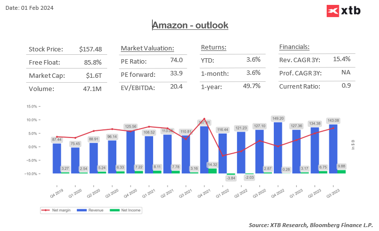 Dopo la chiusura del mercato di oggi a Wall Street, il colosso dell'e-commerce Amazon (AMZN.US) pubblicherà i suoi risultati del quarto trimestre 2023. Gli investitori attendono con impazienza un altro risultato positivo, con aspettative di ricavi record e una crescita continua nei segmenti chiave. Gli analisti osservano attentamente la divisione cloud computing di Amazon, AWS, in quanto importante motore di innovazione e potenziale futuro.