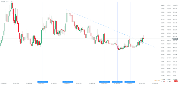 La stagionalità agisce contro i prezzi del GRANO, ma le interruzioni dell'offerta offrono una possibilità. Fonte: xStation5