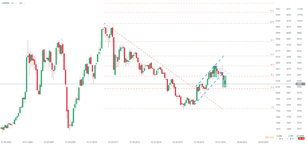 - Il prezzo del rame ha raggiunto un obiettivo di formazione del triangolo, il supporto chiave a un livello del 23,6%