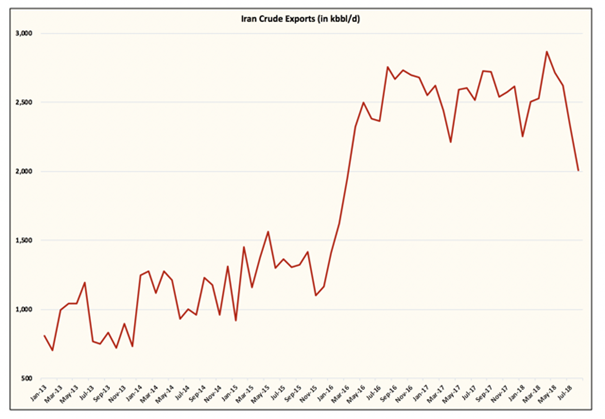 Vediamo un forte calo delle esportazioni dall'Iran e ci sono ancora 2 mesi prima che le sanzioni statunitensi entrino in vigore. Fonte: seekingalpha.com