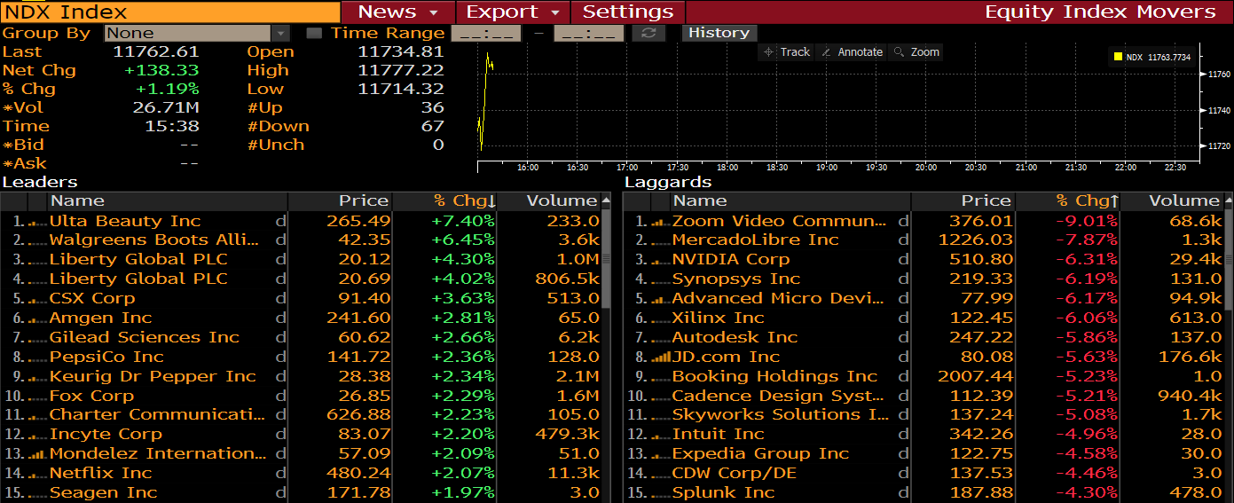 Martedì ha segnato un altro giorno di forte rotazione da titoli tecnologici a titoli value a Wall Street: il Dow Jones ha guadagnato lo 0,90% mentre il Nasdaq è scivolato dell'1,37%. Tuttavia, sembra che la rotazione stia rallentando con tutti i principali indici statunitensi che aprono oggi in rialzo e il Nasdaq guadagna lo 0,9%.