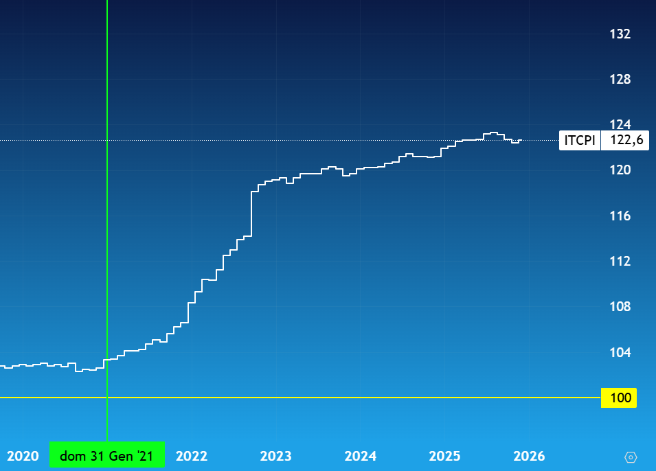 Grafico del Consumer Price Index italiano (Indice dei Prezzi al Consumo) - Fonte: TradingVIew - Istat