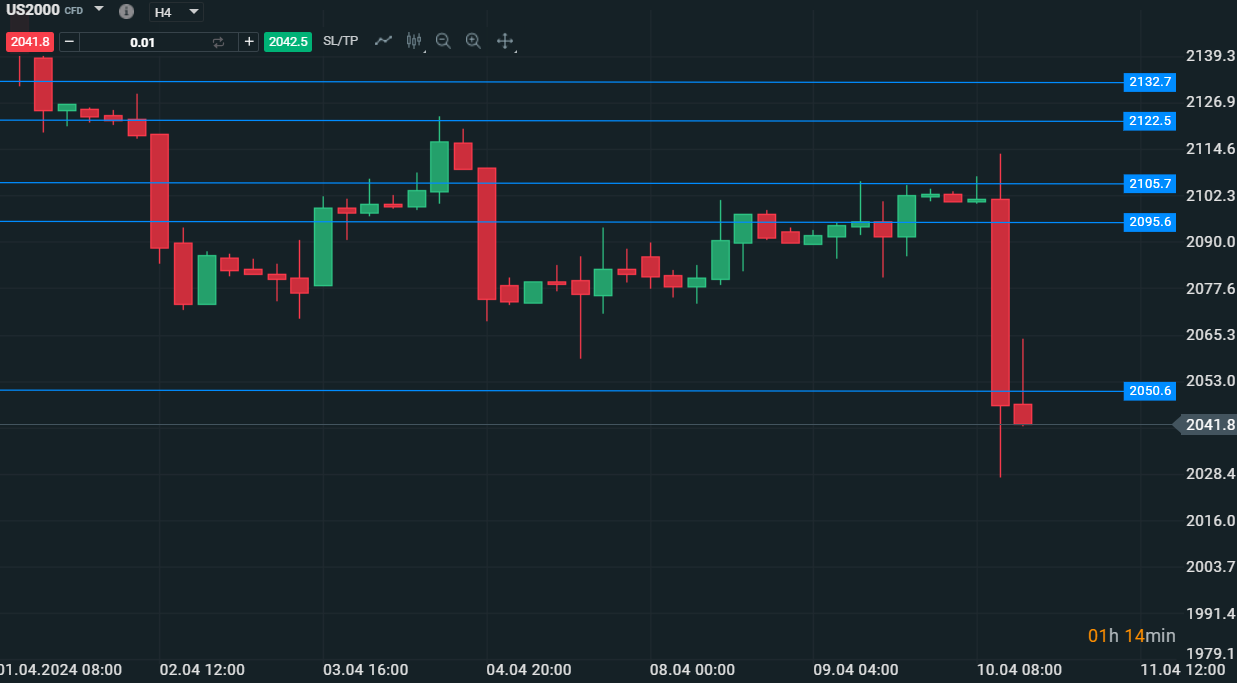 Il forte ribasso del Russell2000 dopo l'uscita del dato - Fonte:XStation