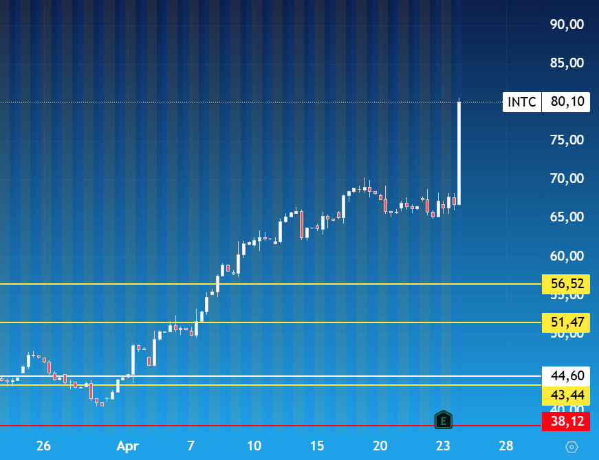 Grafico di Intel timeframe 4h, sessione afterhours dopo la trimestrale - Fonte:XStation