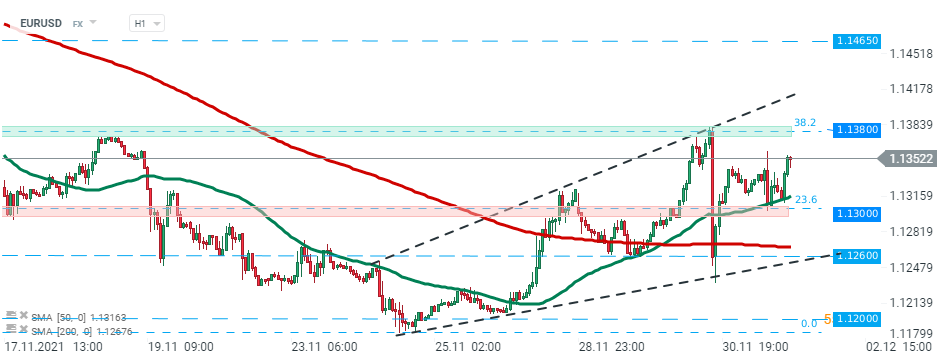 EURUSD ha registrato una reazione relativamente modesta ai dati pubblicati oggi. La coppia di valute continua ad aggirarsi intorno al livello di 1,1350. Fonte: xStation5