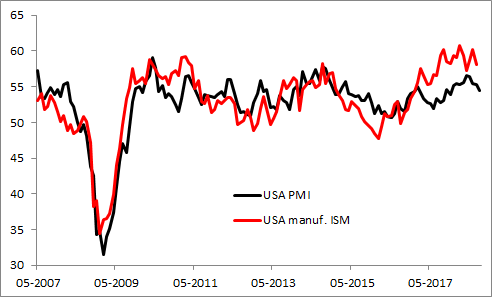 Gli indici PMI statunitensi pubblicati da Markit hanno confermato il previsto calo dei servizi e degli indicatori di produzione. Tuttavia, la portata di una goccia era più grande del previsto in entrambi i casi. L'indice per il settore manifatturiero dovrebbe scendere da 55,3 punti in luglio a 55 punti in agosto. La lettura effettiva ha visto un calo a 54,5 punti, la lettura peggiore da fine 2017. Si prevedeva inoltre che il livello dei servizi scendesse di poco da 56 a 55,8 punti mentre i dati preliminari rilasciati oggi indicano un calo a 55,2 punti, il peggiore dall'aprile 2018. A sua volta il calibro composito è passato da 55,7 punti in luglio a 55 punti in agosto. Si tratta di dati preliminari di agosto, ma se sarà confermato dal rapporto pubblicato il 6 settembre, segnerà il 4 ° mese consecutivo di declino in entrambi i servizi e gli indici di produzione. In tal caso, gli investitori potrebbero crescere preoccupati per la situazione all'interno dell'economia statunitense.