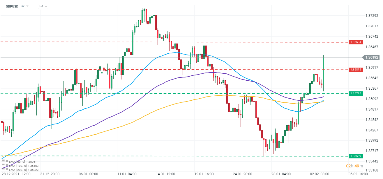 Forte rialzo della sterlina nei confronti del dollaro poco dopo la pubblicazione della decisione della BoE. Fonte: xStation 5